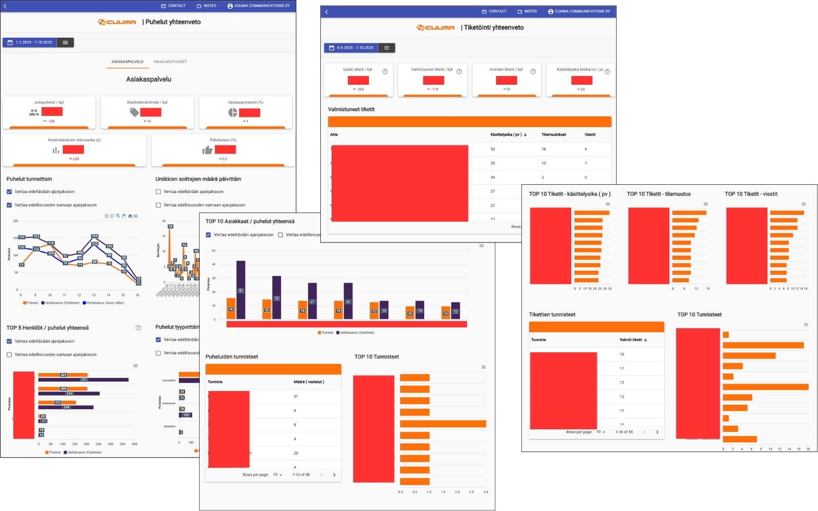 BisLenzin avulla Cuuma seuraa reaaliaikaisesti myynnin, markkinoinnin ja asiakaspalvelun tunnuslukuja yhdestä näkymästä. Tämä mahdollistaa nopeamman reagoinnin, parempia päätöksiä ja jatkuvan kehityksen.